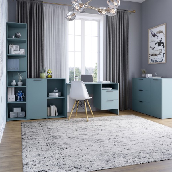 Гарнитур для комнаты LION Краш из 4 элементов Коллекция мебели LION Краш - это стильное и функциональное решение для вашего интерьера. В нее входят: Комод с 2 закрытыми полками и 3 выдвижными ящиками на телескопических направляющих, обеспечивающих удобную организацию одежды, аксессуаров и других вещей. Тумба, идеально подходящая для размещения рядом с кроватью, диваном или письменным столом, обладает компактными размерами и вместительными отделениями. Пенал с открытыми полками, который отлично подойдет для хранения книг, декоративных предметов и мелочей, создавая стильный акцент. Письменный стол с эргономичным дизайном, обеспечивающий комфортное рабочее пространство для учебы или работы. Лаконичный минималистичный дизайн коллекции подчеркивает современный стиль и позволяет гармонично сочетать элементы между собой. LION Краш легко впишется в спальню, гостиную или кабинет, создавая уют, порядок и функциональность в вашем доме. Материал изготовления Гарнитур изготовлен из ЛДСП SWISS KRONO - высококачественного материала, который отличается прочностью, устойчивостью к механическим повреждениям, влаге и высоким температурам. Это гарантирует долговечность мебели и ее привлекательный внешний вид. Особенности Современный стиль: минималистичный дизайн гармонично дополняет современную эстетику интерьера. Вместительность: каждый элемент мебели оснащен просторными отделениями, обеспечивающими порядок и удобство хранения. Удобство: оптимальные размеры позволяют легко интегрировать мебель как в большие, так и в небольшие помещения. Надежность: высококачественный ЛДСП на телескопические направляющие ящиков гарантируют долговечность и устойчивость конструкции. Размеры: Комод: Ширина: 1200 мм Глубина: 430 мм Высота: 860 мм Пенал с открытыми полками: Ширина: 350 мм Глубина: 500 мм Высота: 2000 мм Письменный стол: Ширина: 1250 мм Глубина: 520 мм Высота: 750 мм Тумба однодверная: Ширина: 820 мм Глубина: 430 мм Высота: 860 мм