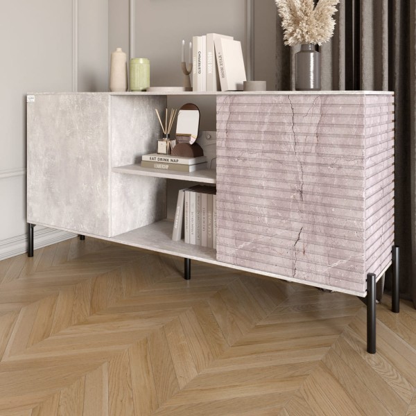Комод відкритий на чорних металевих ніжках LION Грей Бетон/Камінь