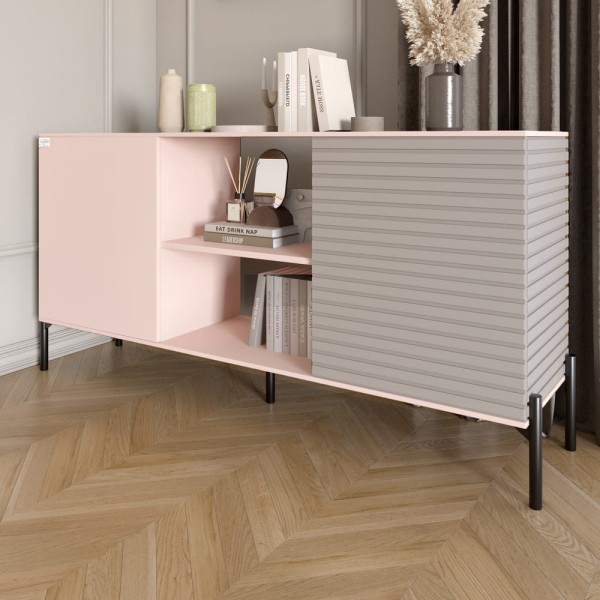 Комод відкритий на чорних металевих ніжках LION Грей Рожевий/Кашемір