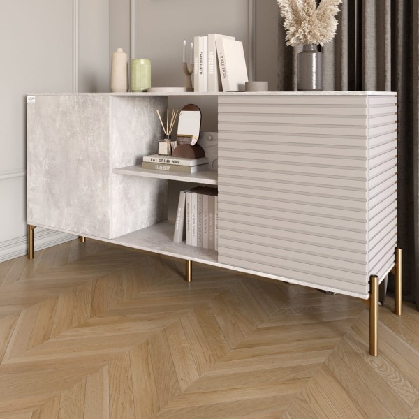 Комод відкритий на золотих металевих ніжках LION Грей Бетон/Кашемір
