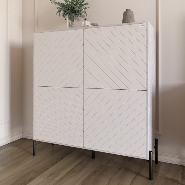 Комод-пенал із чорними металевими ніжками LION Амарант 114х40х126,5 см Бетон/Білий
