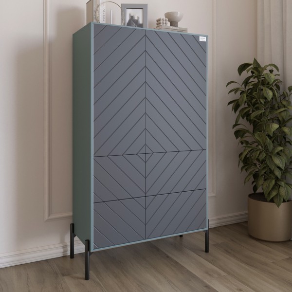 Комод-пенал з рельєфним оздобленням фасаду та чорними металевими ніжками LION Амарант 84x40x150 см Граніт сірий/Графітовий