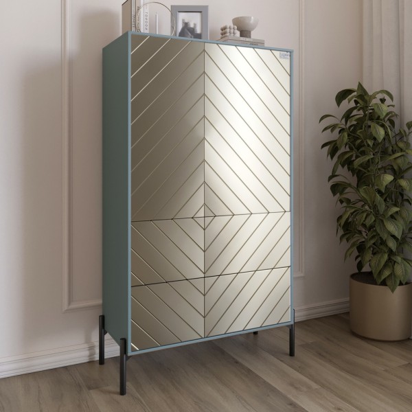 Комод-пенал з рельєфним оздобленням фасаду та чорними металевими ніжками LION Амарант 84x40x150 см Граніт сірий/Перламутровий металік RAL-7048 840x400x1500 мм