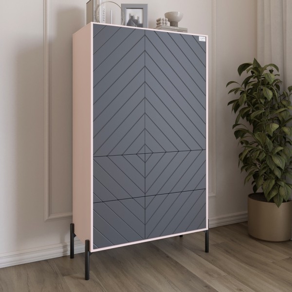 Комод-пенал з рельєфним оздобленням фасаду та чорними металевими ніжками LION Амарант 84x40x150 см Рожевий/Графітовий