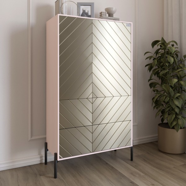 Комод-пенал з рельєфним оздобленням фасаду та чорними металевими ніжками LION Амарант 84x40x150 см Рожевий/Перламутровий металік RAL-7048 840x400x1500 мм