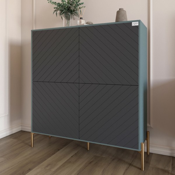 Комод-пенал із золотими металевими ніжками LION Амарант 114х40х126,5 см Граніт сірий/Графітовий