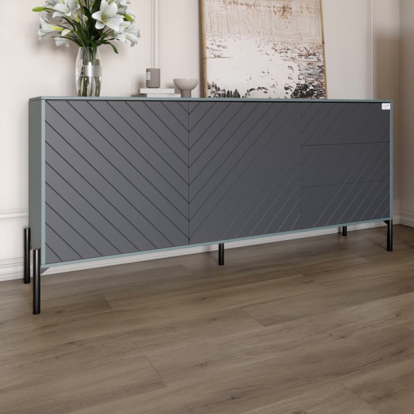 Комод із чорними металевими ніжками LION Амарант 168x40x76,5 см Граніт сірий/Графітовий