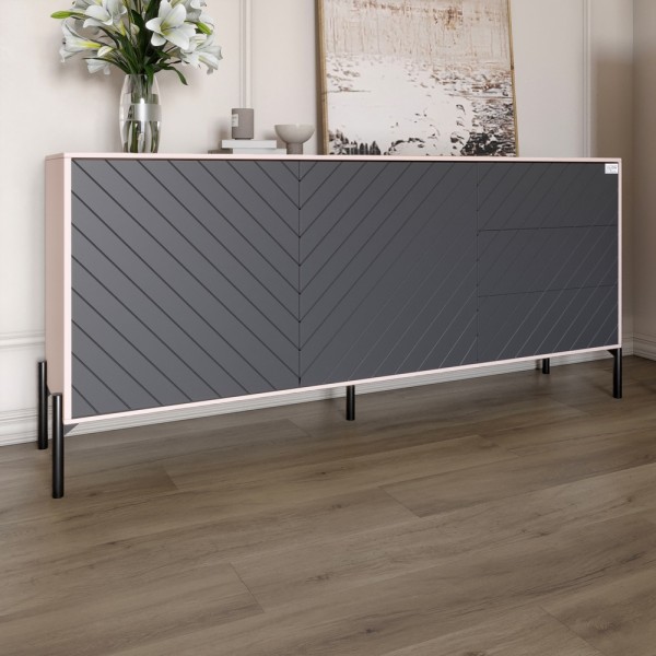 Комод з чорними металевими ніжками LION Амарант 168x40x76,5 см Розовий/Графітовий