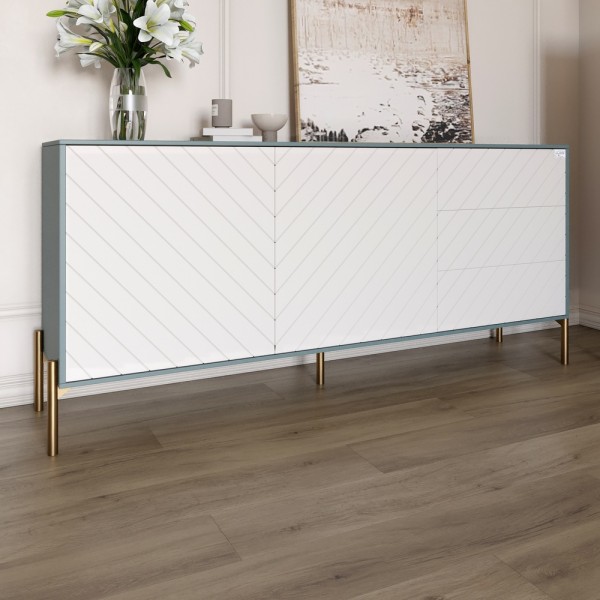 Комод із золотими металевими ніжками LION Амарант 168x40x76,5 см Граніт сірий/Білий