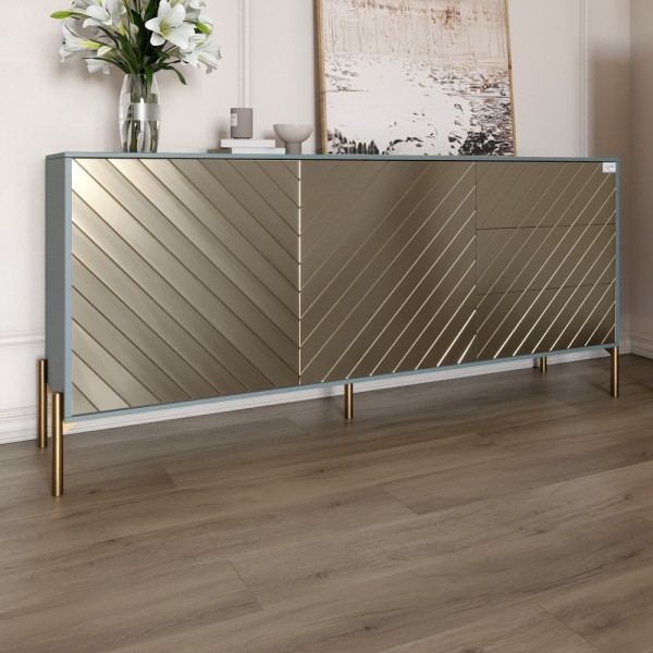Комод LION Амарант Комод из коллекции «Амарант» изготовлен из высококачественных материалов и отличается минималистичным скандинавским дизайном. Его фасад украшен элегантным диагональным рисунком, который добавляет динамики и утонченности, а металлические черные ножки придают визуальную легкость. Комод оснащен просторными отделениями и ящиками, которые обеспечивают удобное хранение вещей, сохраняя порядок в доме. Этот комод станет стильным акцентом вашего пространства, объединяя практичность и эстетическую привлекательность. Материал изготовления Комод изготовлен из ЛДСП SWISS KRONO - высококачественного материала, сочетающего эстетику с прочностью и надежностью. ЛДСП от SWISS KRONO известен своей устойчивостью к механическим повреждениям, влаге и высоким температурам, что гарантирует долговечность мебели и сохраняет ее эстетический вид на долгие годы. Ножки комода изготовлены из металла черного цвета. Варианты цвета ножек тумбы Черный Золотой Особенности 2 отделения с полками и 3 выдвижных ящика - обеспечивают максимальный комфорт в использовании и позволяют хранить различные вещи в организованном порядке. Комод предлагает достаточно места для хранения белья, аксессуаров и других предметов. Телескопические направляющие- обеспечивают плавное и бесшумное открытие ящиков, гарантируя удобство использования. Механизм долговечен и позволяет полностью раскрыть ящики для быстрого доступа к их содержимому. Диагональный узор фасадов - современный и стильный дизайн с уникальным геометрическим рисунком в виде "елочки" подчеркивает изысканность мебели и добавляет динамики в интерьер. Кромка 2 мм - защищает края изделий от повреждений, придает им эстетически завершенный вид и повышает долговечность мебели. Кромку изготавливают из прочных материалов, что позволяет ей выдерживать интенсивное использование и сохранять привлекательный внешний вид на протяжении многих лет. Размеры: Ширина: 1585 мм Глубина: 390 мм Высота: 770 мм