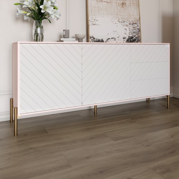 Комод з золотими металевими ніжками LION Амарант 168x40x76,5 см Рожевий/Білий