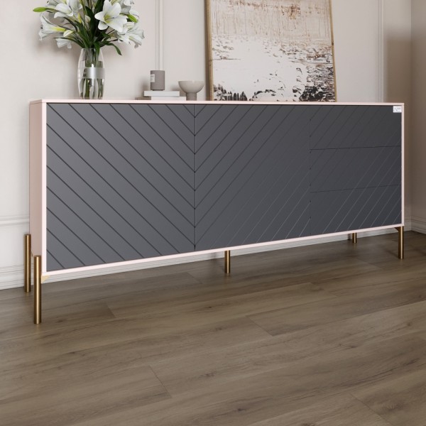 Комод LION Амарант Комод из коллекции «Амарант» изготовлен из высококачественных материалов и отличается минималистичным скандинавским дизайном. Его фасад украшен элегантным диагональным рисунком, который добавляет динамики и утонченности, а металлические черные ножки придают визуальную легкость. Комод оснащен просторными отделениями и ящиками, которые обеспечивают удобное хранение вещей, сохраняя порядок в доме. Этот комод станет стильным акцентом вашего пространства, объединяя практичность и эстетическую привлекательность. Материал изготовления Комод изготовлен из ЛДСП SWISS KRONO - высококачественного материала, сочетающего эстетику с прочностью и надежностью. ЛДСП от SWISS KRONO известен своей устойчивостью к механическим повреждениям, влаге и высоким температурам, что гарантирует долговечность мебели и сохраняет ее эстетический вид на долгие годы. Ножки комода изготовлены из металла черного цвета. Варианты цвета ножек тумбы Черный Золотой Особенности 2 отделения с полками и 3 выдвижных ящика - обеспечивают максимальный комфорт в использовании и позволяют хранить различные вещи в организованном порядке. Комод предлагает достаточно места для хранения белья, аксессуаров и других предметов. Телескопические направляющие- обеспечивают плавное и бесшумное открытие ящиков, гарантируя удобство использования. Механизм долговечен и позволяет полностью раскрыть ящики для быстрого доступа к их содержимому. Диагональный узор фасадов - современный и стильный дизайн с уникальным геометрическим рисунком в виде "елочки" подчеркивает изысканность мебели и добавляет динамики в интерьер. Кромка 2 мм - защищает края изделий от повреждений, придает им эстетически завершенный вид и повышает долговечность мебели. Кромку изготавливают из прочных материалов, что позволяет ей выдерживать интенсивное использование и сохранять привлекательный внешний вид на протяжении многих лет. Размеры: Ширина: 1585 мм Глубина: 390 мм Высота: 770 мм