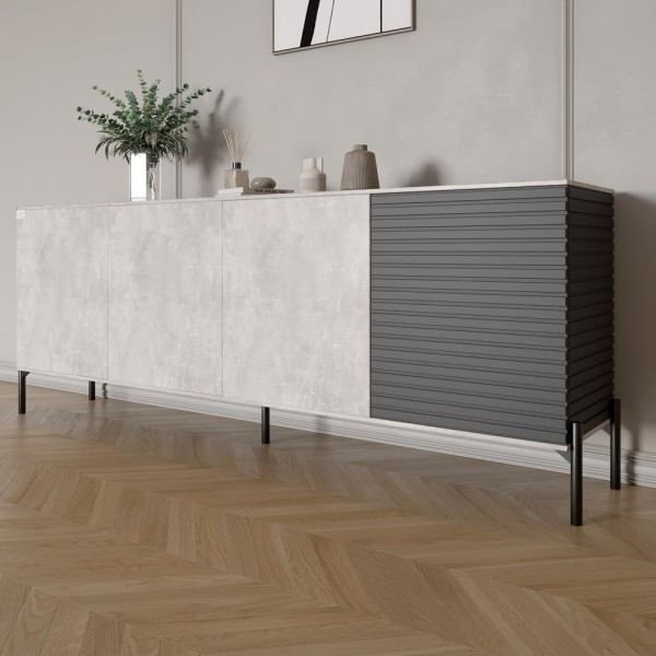 Комод у вітальню на чорних металевих ніжках LION Грей 204x38x76,5 см Бетон/Асфальт