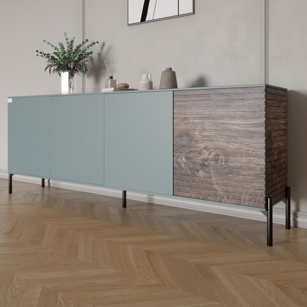 Комод у вітальню на чорних металевих ніжках LION Грей 204x38x76,5 см Граніт сірий/Дерево