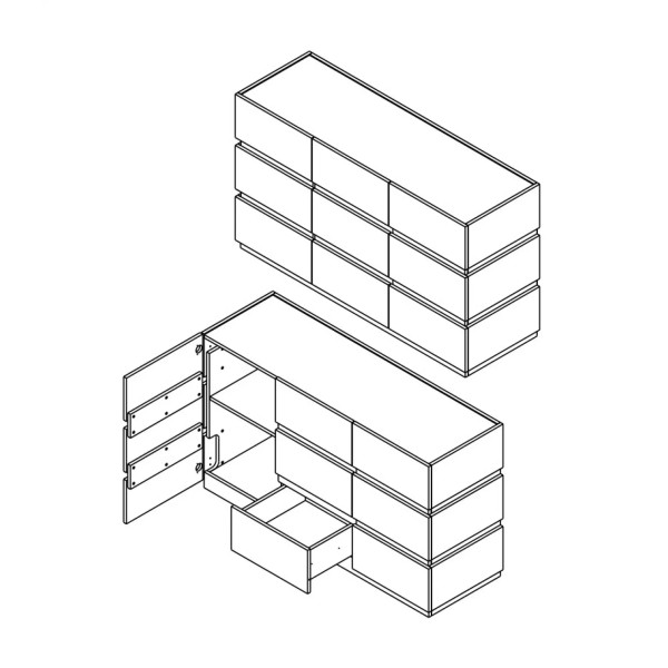 Комод не тільки естетично привабливий, але й надзвичайно практичний. Його продумана конструкція з двома дверцями та трьома висувними ящиками забезпечує достатньо місця для зберігання всіх ваших речей. Тепер ви зможете легко організувати свій простір, зберігаючи порядок і комфорт у вашій спальні.
