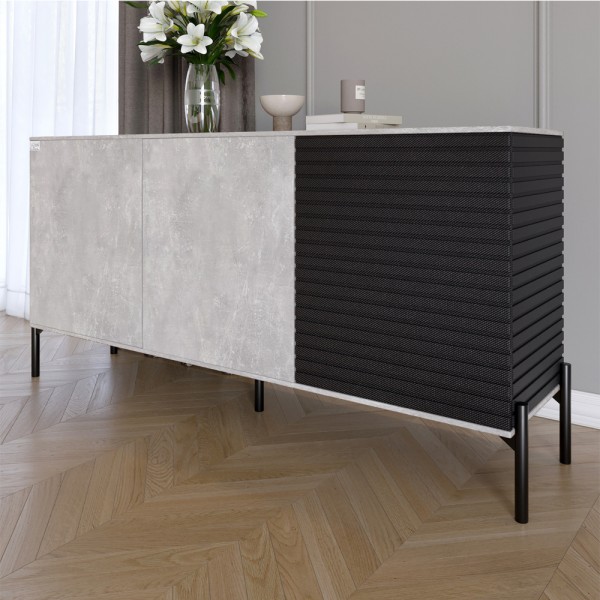 Комод закритий у вітальню на чорних металевих ніжках LION Грей Бетон/Асфальт 1540x380x765