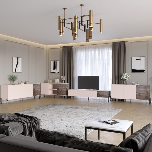 Комплект модульний для вітальні LION Грей 4 елементи з чорними металевими ніжками Рожевий/Дерево
