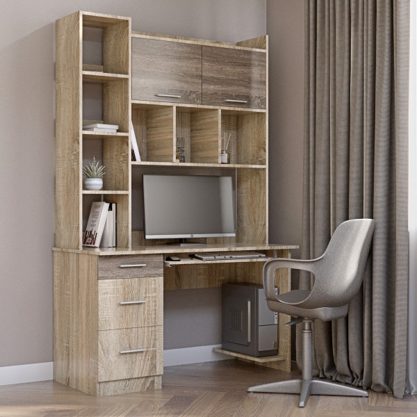 Приваблює увагу не лише естетика, а й практичність. Стіл обладнано зручними полицями, які допоможуть організувати ваші книги, документи та інші необхідні речі. Тепер все, що вам потрібно, буде завжди під рукою, що значно підвищить вашу продуктивність та комфорт під час роботи.