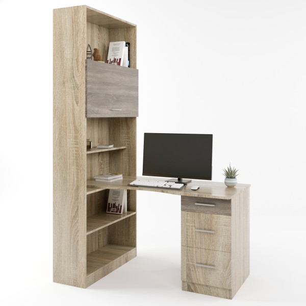 Компьютерный стол со шкафом Гранд Дуб сонома + Трюфель Стильный и оригинальный компьютерный стол Гранд одна из последних новинок фабрики "Эверест". Выполнен в комбинации со шкафом, имеющим открытые и закрытые полки, в которых удобно хранить различные элементы декора, а также книги и документы. Данная модель дополнена тремя выдвижными ящиками, имеет компактные размеры и не займет много места. Удачная комбинация стола и шкафа, обеспечивает удобством и позволяет использовать его как для работы, так и для учебы. Компьютерный стол Гранд является универсальным и собирается на любую сторону. То есть пенал может быть как слева, так и справа от стола Видеоинструкция по сборке Купить недорого компьютерный стол Гранд Эверест можно в следующих цветах: l Венге+Дуб молочный, l Сонома+трюфель. Компьютерный стол комплектуется тумбой на 3 выдвижных ящика и шкафом, в которых можно поместить все необходимые вещи. Корпус и фасады компьютерного стола выполнены из экологически чистого ЛДСП (уровень эмиссии Е1) швейцарской компании Kronospan, поэтому подходит даже в детскую комнату. Габариты стола Гранд (Ш х Г х В) 132 х 80 х 210 см СБОРКА И КОМПЛЕКТАЦИЯ Вся мебель поставляется в РАЗОБРАННОМ ВИДЕ и упакована в многослойный гофрированный картон. Есть подробная инструкция. Все детали просверлены и готовы к самостоятельной сборке. Для самостоятельной сборки Вам понадобится: l шестигранный ключ под конфирмат (4 мм) l крестовая отвертка l молоток Остались вопросы или хотите дешево купить компьютерный стол Гранд Эверест? Оформляйте заказ через корзину или жмите на оранжевую кнопку чата в правом нижнем углу экрана и наши специалисты моментально помогут Вам, ответив на все возникшие вопросы!