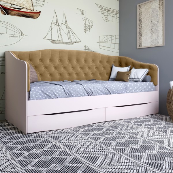 Детская односпальная кровать LION Л-9 190x90 см Кровать Л-9 - это стильное и функциональное решение для комнаты вашего ребенка. Ее мягкая спинка обита тканью в элегантном оттенке Лили-02, создавая уютную зону для отдыха и сна. Модель изготовлена из высококачественных, экологически чистых материалов, что гарантирует долговечность, безопасность и устойчивость к износу. Одним из главных преимуществ этой кровати является наличие мягких бортиков и спинки, что обеспечивает удобство и комфорт вашего ребенка во время сна. Кроме того, кровать имеет два вместительных выдвижных с телескопическими направляющими полного выдвижения, которые обеспечивают удобное хранение постельного белья, игрушек или других вещей, сохраняя порядок в комнате. Также, кровать может быть доукомплектована защитным быльце-бортиком для предотвращения падения детей. Материал изготовления Кровать изготовлена из ЛДСП SWISS KRONO - высококачественного материала, сочетающего эстетику с прочностью и надежностью. ЛДСП от SWISS KRONO известен своей стойкостью к механическим повреждениям, влаге и высоким температурам, что гарантирует долговечность мебели и сохраняет ее эстетичный вид на долгие годы.   Ортопедические ламели Кровать комплектуется ламелями, обеспечивающими оптимальную поддержку матраса и правильное положение тела ребенка во время сна. Ламели способствуют вентиляции матраса, что повышает комфорт и обеспечивает здоровый отдых. Особенности: Выдвижные ящики. Кровать оснащена двумя ящиками с телескопическими направляющими, позволяющими хранить книги, игрушки или постельное белье прямо под кроватью, сохраняя пространство в детской комнате. Мягкая спинка. Обивка из прочной и приятной на ощупь ткани. Спинка обеспечивает комфорт при чтении, отдыхе или просмотре мультфильмов. Удобное решение для дополнительной защиты ребенка от соприкосновения со стеной. Удобные размеры. Спальное место размером 190x90 см подходит как для младших детей, так и для подростков. Кромка 2 мм - защищает края изделий от повреждений, придает им эстетически завершенный вид и повышает долговечность мебели. Кромка изготавливается из прочных материалов, что позволяет ей выдерживать интенсивное использование и сохранять привлекательный внешний вид на протяжении многих лет. Размеры: Спальное место: 190x90 см Ширина кровати: 1935 мм Глубина: 900 мм Высота: 940 мм