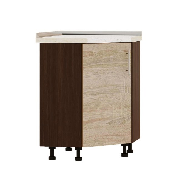 Кухонный модуль нижний угловой Эверест Оптима Н70-795 Дуб сонома (без столешницы) 80х80х82 см Товар производится под заказ! Срок изготовления от 2 до 3 недель. ПРЕДОПЛАТА 30%. *В случае отказа предоплата не возвращается. Внимание! Цены на модули указаны БЕЗ СТОЛЕШНИЦЫ. Кухонный модуль нижний угловой Оптима Н70-795 от мебельной фабрики Эверест используется в угловых зонах кухонного пространства. На все фасады этой серии в комплект предоставляются хромированные рейлинговые ручки (128мм). Корпус укомплектован качественной фурнитурой и пластиковыми регулируемыми опорами (100мм). Модуль выполнен из высококачественной ламинированной ДСП. Модуль внутри разделенный полкой для хранения посуды, кухонных приборов или других кухонных предметов. Цвет фасада - дуб сонома, каркас - венге темный. Конструкция модуля крепится на пластиковых ножках, которые обеспечивают устойчивость и защиту от повреждений пола. Кухонный модуль легко устанавливается и представляет собой отличное решение для создания практичной и функциональной кухни в современном стиле. Размеры модуля: Ширина - 80 см Глубина - 80 см Высота - 82 см На сайте Треба Меблі существует множество вариантов кухонных модулей серии Оптима, поэтому вы можете выбрать и соединить для вашей кухни любой по цвету, размеру создав готовый кухонный комплект. СБОРКА И КОМПЛЕКТАЦИЯ Мебель доставляется в фабричной упаковке (гофрированный картон), в разобранном виде! В комплект поставки входит фурнитура для сборки, все технологические отверстия просверлены. Изделие КОМПЛЕКТУЕТСЯ ключом для сборки (шестигранником)! Для сборки вам необходимо: Крестовая отвертка Шестигранник (4 мм ) Клей ПВА (если есть шканты) Молоток Выберайте качество с кухонными модулями от фабрики Эверест, они сочетают стиль и практичность, создавая уютную среду для приготовления пищи и хранения кухонных принадлежностей. С нами вы можете быть уверены, что ваша кухня будет смотреться модно и одновременно служить вашим потребностям.
