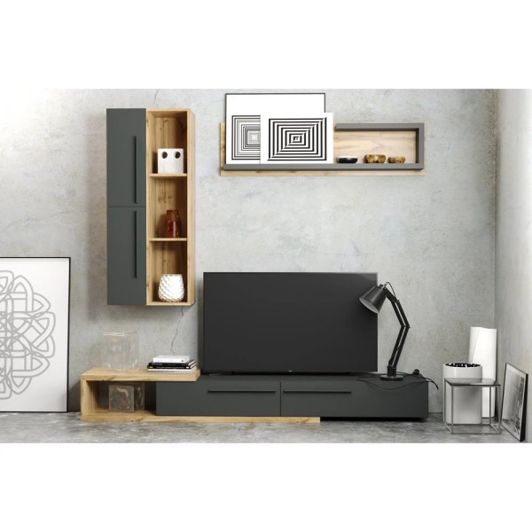 Модульная стенка для гостиной Гербор Кальвадос Дуб тахо/Антрацит Гостиная Кальвадос от торговой марки Gerbor станет идеальным дополнением интерьера в стиле современного минимализма. Производится на территории Украины из высококачественного ЛДСП, выбран цвет выполнения - Дуб тахо/антрацит, придающий изделию особый шик. Эта гостиная имеет габариты 210х200х38 см, благодаря чему позволит разместить все необходимое, сохраняя при этом свободное пространство в комнате. Внешний вид модели Кальвадос - это диалог современных тенденций и классического минимализма. Она идеально сочетается с разными элементами интерьера, наполняя пространство уютом и создавая гармоничную атмосферу. Специальное покрытие ЛДСП защищает корпус и фасады модели от износа и царапин, а также делает уход за мебелью простой и удобной. Покупая Гостиную Кальвадос производства Gerbor (Украина), вы выбираете не только стиль и комфорт, но и отличное качество. Характеристики: Высота: 200 см Глубина: 38 см Длина: 210 см