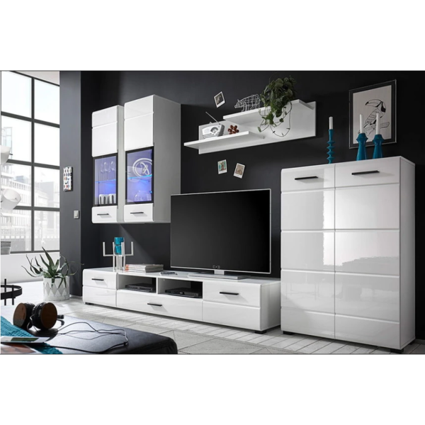 Модульная стенка для гостиной Гербор Ушер Нимфея альба/Белый глянец Набор мебели в гостиную Ушер Нимфея альба/белый глянец Гербор (Gerbor) - это стильное и современное решение для обустройства вашей гостиной. Данный набор включает в себя практичные и функциональные модули, которые идеально подойдут для любого интерьера. Набор состоит из следующих модулей: Тумба РТВ Ушер RTV2D1S; Витрина Ушер REG1W2D2S L/P; Полка Ушер POL/110; Витрина навесная Вушер SFW 1W. Мебель выполнена из высококачественных материалов: корпус из ДСП, фасады из МДФ. Это гарантирует не только крепость и долговечность мебели, но и эстетическую привлекательность. Особое внимание следует обратить на подсветку, входящую в комплект. LED подсветка идеально дополняет витрины и создает атмосферу уюта и комфорта в вашей гостиной. Характеристики: Витрина навесная: Длина - 40 см, Глубина - 38 мы Высота - 125 см Витрина: Длина - 90 см, Глубина - 38 мы Высота - 127 см Тумба под ТВ: Длина - 100 см, Глубина - 50 мы Высота - 32 см Полка: Длина - 90 см, Глубина - 30 мы Высота - 12 см