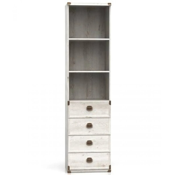 Пенал открытый с ящиками ВМК (БРВ) Индиана JREG4SO/50 Сосна аризонская Откройте для себя стильное и функциональное решение для хранения в виде стеллажа Индиана JREG4SO/50 от ВМК (БРВ). Изготовлен из качественного материала - ДСП для корпуса и МДФ для фасада, этот стеллаж обещает быть прочным и долговечным. Стильный дизайн в современном стиле сочетается с естественным оттенком аризонской сосны, который придаст теплу и уюту в любой интерьер. Характеристики: Высота: 195 см; Глубина: 40 см; Длина: 50 см. Он оснащен двумя открытыми полками из ДСП и четырьмя выдвижными ящиками, обеспечивая достаточное место для хранения различных предметов. Фурнитура в виде ролика обеспечивает лёгкость и удобство использования.