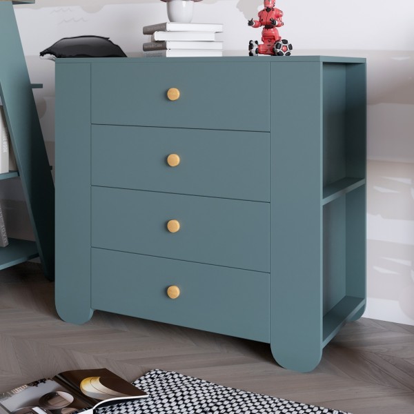 Комод для детской комнаты LION Инди с 4 ящиками и боковыми нишами Гранит серый (LION-042944)