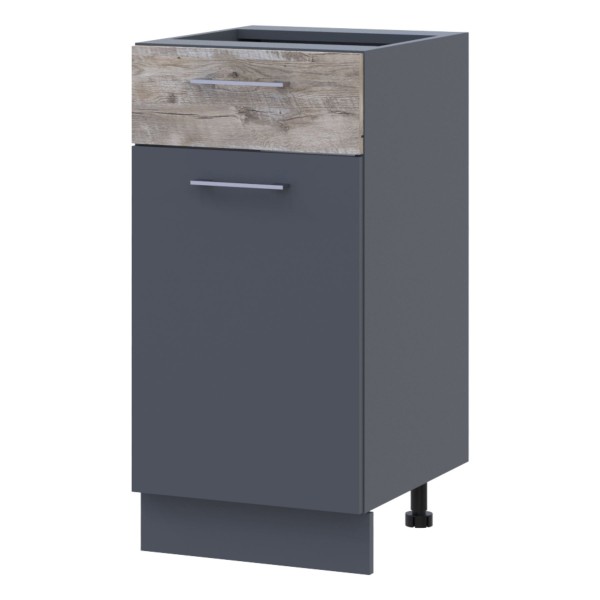 Кухонный модуль нижний Doros Лея НЯ82_40 40х46,6х82 см в цвете Графит + Дуб клондайк Кухонный модуль нижний Doros Лея НЯ82_40 (40x46,6x82 см) — стильное и практичное решение для вашей кухни. Сочетание графита и дуба клондайк придаёт модулю современный и привлекательный вид, который легко впишется в любой интерьер. Компактные размеры и функциональный дизайн делают этот модуль идеальным для хранения кухонных принадлежностей и продуктов. Дизайн и функциональность Элегантное сочетание графита и дуба клондайк создаёт стильный и современный вид. Модуль обеспечивает достаточно места для хранения кухонной утвари и продуктов, поддерживая порядок на кухне. Компактные размеры делают его подходящим для небольших кухонь и удобным в использовании. Качество и долговечность Модуль Doros Лея изготовлен из высококачественных материалов, что обеспечивает его долговечность и устойчивость. Надёжная конструкция гарантирует стабильность и прочность при ежедневном использовании. Качественная фурнитура и тщательная сборка обеспечивают долгий срок службы изделия и удобство в эксплуатации. Характеристики Тип: Кухонный модуль нижний Стиль: Современный Высота (мм): 820 Глубина (мм): 466 Ширина (мм): 400 Материал каркаса: ДСП Материал фасада: ДСП Цвет товара: Графит + Дуб клондайк Назначение: Для кухни, Для хранения Производитель: Doros Европейский стандарт упаковки МФ Doros. Краш-тест:
