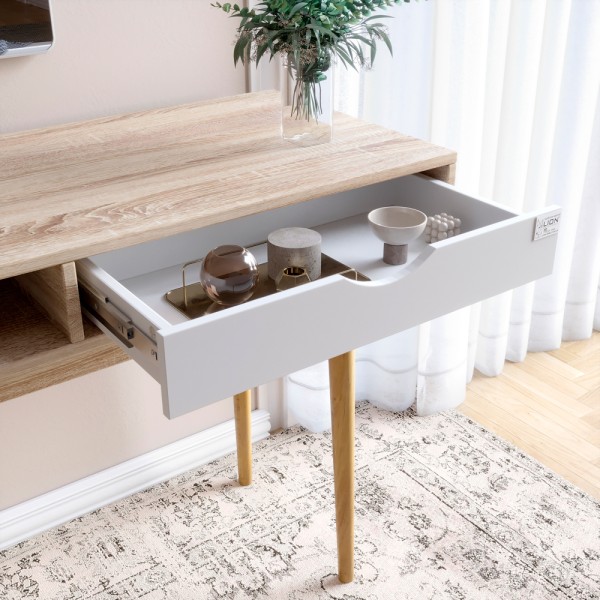 Откройте для себя идеальный баланс между элегантностью и практичностью с письменным столом LION Сканди-1. Этот стол станет не только отличным дополнением вашего интерьера, но и незаменимым помощником в вашей ежедневной деятельности. Его современный дизайн в оттенках белого и дуба Артизан придает помещению свежесть и уют.