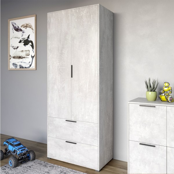 Шафа розпашна дводверна LION Краш з 2 ящиками Бетон