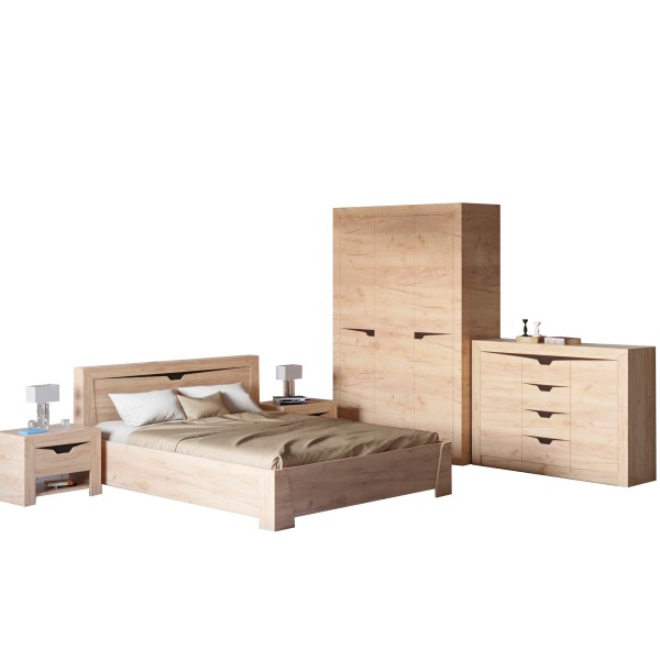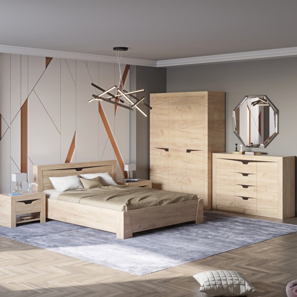 Виготовлений з високоякісних матеріалів, комплект включає п'ять елементів, які задовольнять навіть найвибагливіші смаки. Дуб крафт золотий надає виробу елегантності та природного шарму, а також забезпечує довговічність та стійкість до зношення. Ви зможете насолоджуватися красою та комфортом вашої спальні впродовж багатьох років.