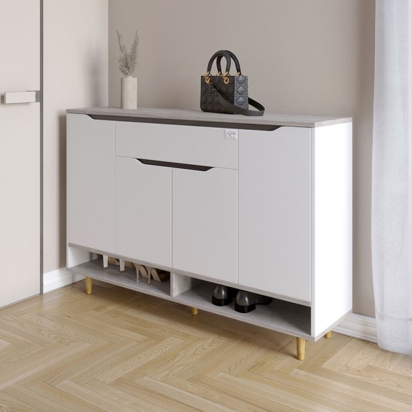 Завдяки своїм компактним розмірам, тумба легко впишеться у будь-який простір, забезпечуючи при цьому достатньо місця для зберігання вашого взуття. Стильне поєднання кольорів Німфея альба та Шварцвальд надає виробу елегантного вигляду, що підкреслить інтер'єр вашого передпокою. Вона стане не лише зручним місцем для зберігання, але й яскравим акцентом у вашому домі.