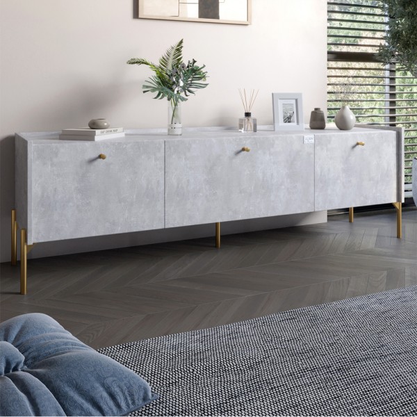 Тумба під телевізор на 3 ящики LION Wood із золотими ніжками 160х65х40 см Бетон