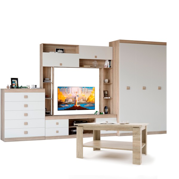 Дуб сонома в комбінації з білим кольором надає комплекту елегантний вигляд, який підходить до будь-якого стилю оформлення. Ця вітальня стане не лише функціональним елементом вашого дому, а й справжньою окрасою інтер'єру. Вона підкреслить ваш смак і стиль, забезпечуючи затишок і комфорт у вашому домі.
